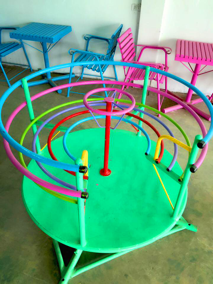 คอกหมุน ใช้นั่งข้างใน แล้วจับแกนกลาง สามารถหมุนได้
