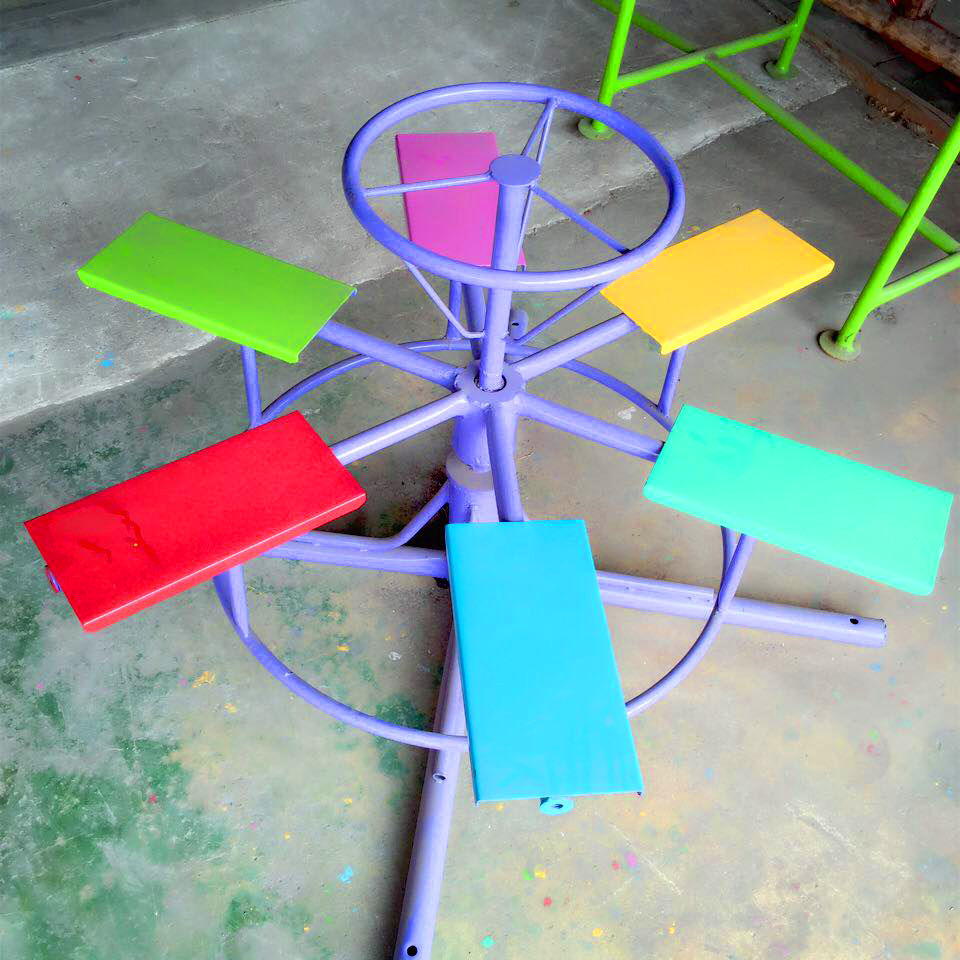 ม้าหมุนพวงมาลัย 6 ที่ ชิงช้าสาย4 เหมาะสำหรับเด็กเล็กเล่นได้พร้อมกัน 6คนเหมาะสำหรับโรงเรียนและร้านอาหารไว้ตามสนามเด็กเล่น