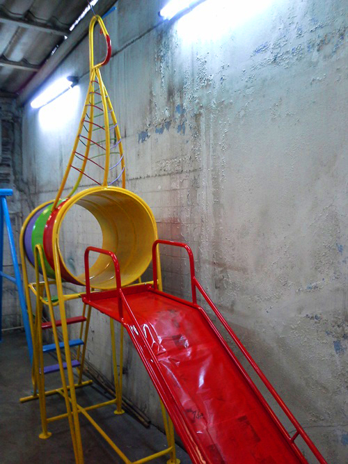 มี 3 ขั้นบันได มีที่ลื่นเป็นสแตนเลส หัวสัตว์เป็นรูปยีราฟ